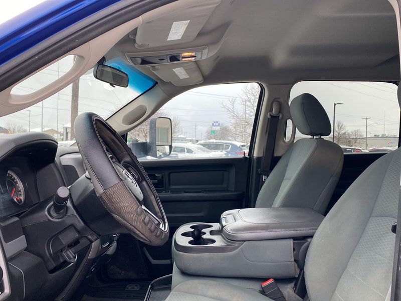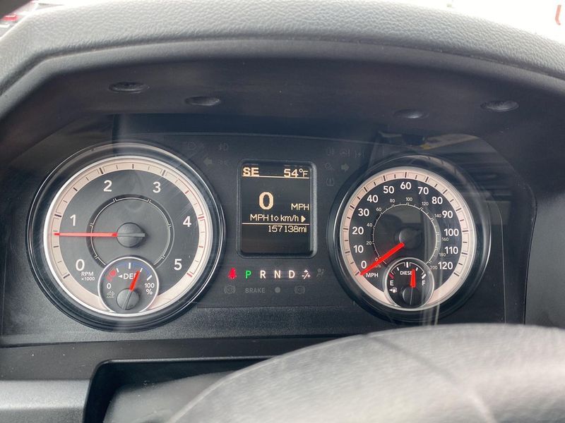 ENGINE: 6.7L I6 CUMMINS TURBO DIESEL, TRANSMISSION: 6-SPEED AUTOMATIC 68RFE, QUICK ORDER PACKAGE 2FA TRADESMAN, 3.42 AXLE RATIO, WHEELS: 17" X 6.0" STEEL CHROME CLAD, TIRES: LT235/80R17E OWL ON/OFF ROAD, DIESEL GRAY/BLACK, CLOTH 40/20/40 BENCH SEAT, GVWR: 14,000 LBS, CHROME APPEARANCE GROUP, POPULAR EQUIPMENT GROUP, PROTECTION GROUP, DUAL REAR WHEELS, ELECTRIC SHIFT-ON-THE-FLY TRANSFER CASE, 180 AMP ALTERNATOR, TRAILER BRAKE CONTROL, 5TH WHEEL/GOOSENECK TOWING PREP GROUP, TRANSFER CASE SKID PLATE SHIELD, SPRAY IN BEDLINER, CHROME TUBULAR SIDE STEPS, CLEARANCE LAMPS, LED BED LIGHTING, RADIO: UCONNECT 3 W/5" DISPLAY, SIRIUSXM SATELLITE RADIO, REMOTE KEYLESS ENTRY, FRONT & REAR RUBBER FLOOR MATS, PARKVIEW REAR BACK-UP CAMERA, PARKSENSE REAR PARK ASSIST SYSTEM