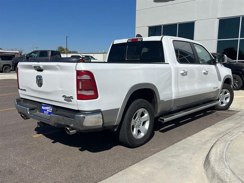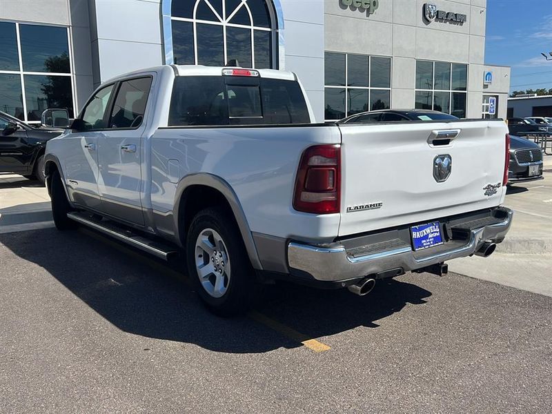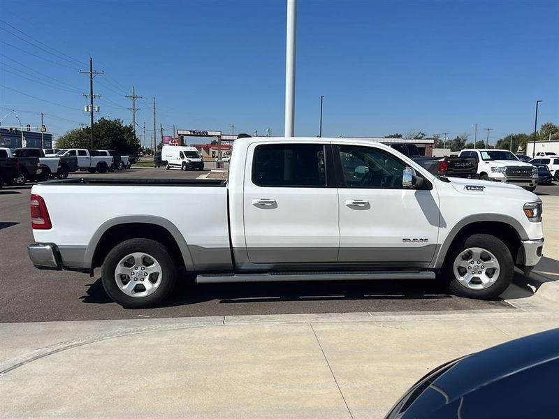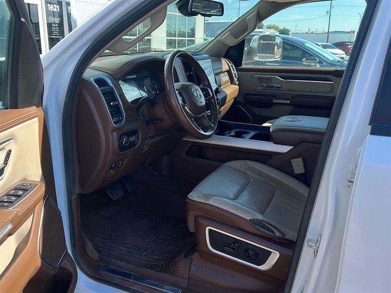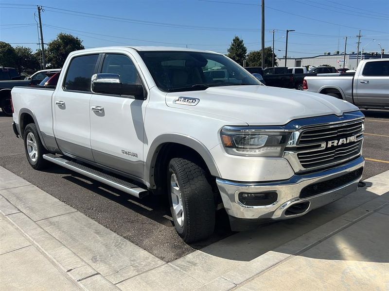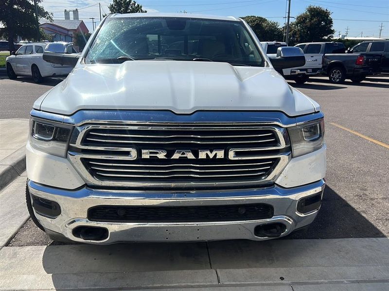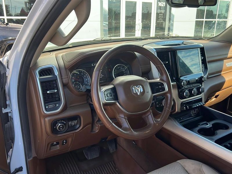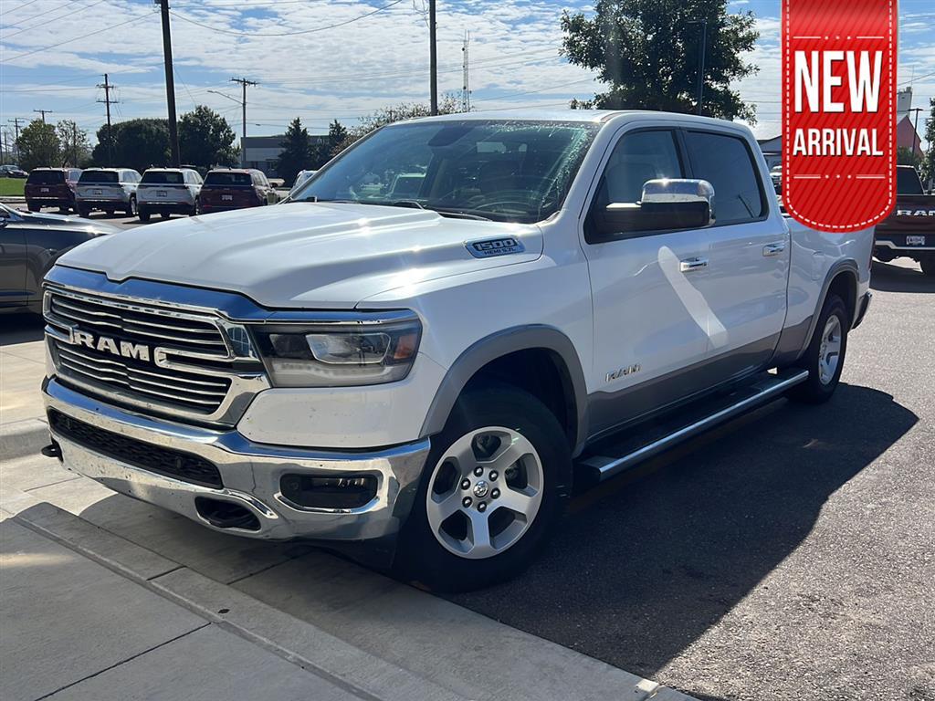 This 2019 Ram 1500 Laramie, has a Ivory White Tri-Coat Pearlcoat exterior and an Lt Frost Beige/Mountain interior color. 76,740 miles. Stock Number 3721. You can connect with us by calling 620-315-9264.