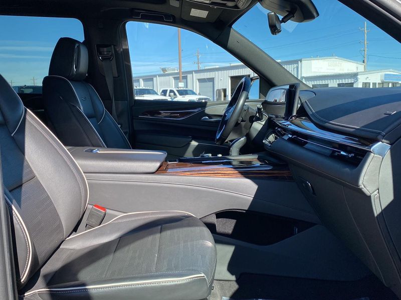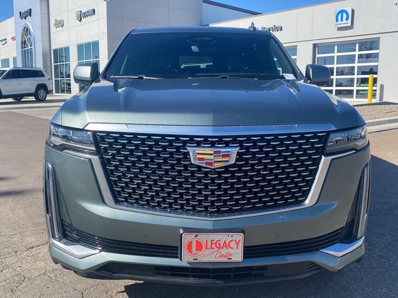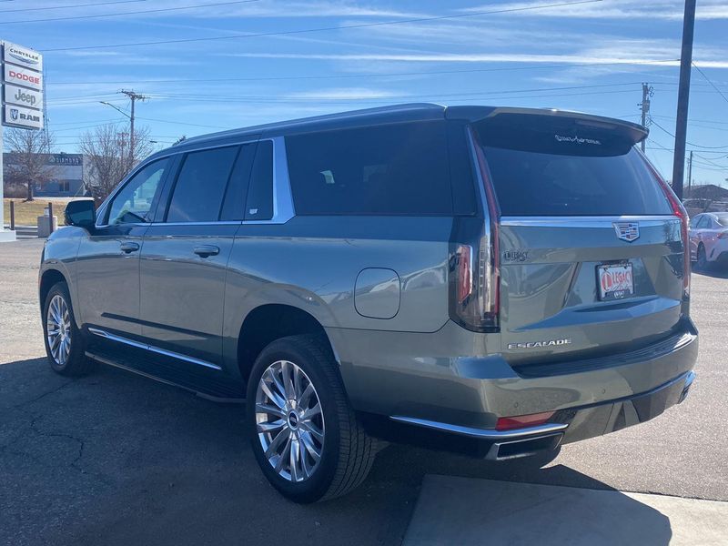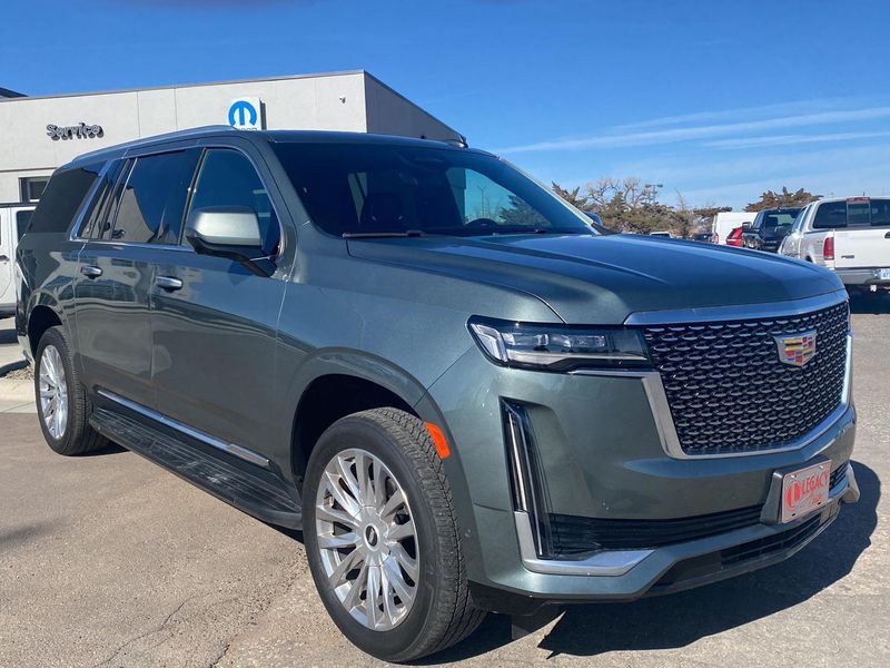 This 2023 Cadillac Escalade ESV 4WD Premium Luxury, has a Dark Emerald Metallic exterior and an Jet Black interior color. 60,041 miles. Stock Number 3763. You can connect with us by calling 620-315-9264.