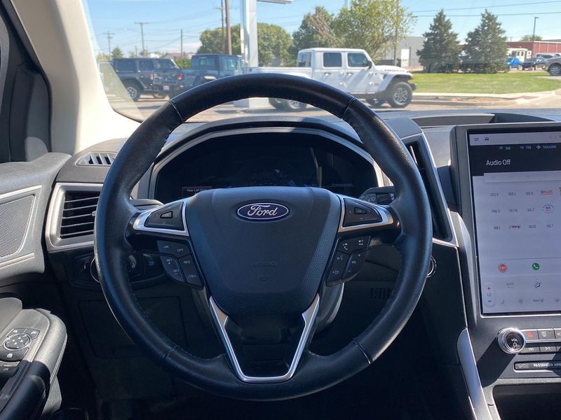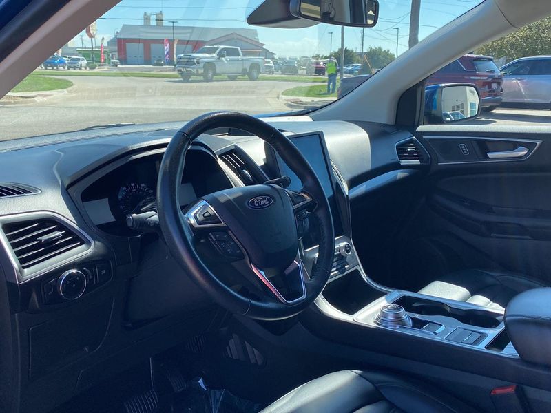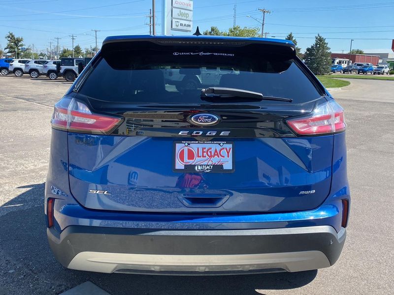 This 2023 Ford Edge SEL, has a BLUE exterior and an interior color. 62,978 miles. Stock Number 3698. You can connect with us by calling 620-315-9264.
