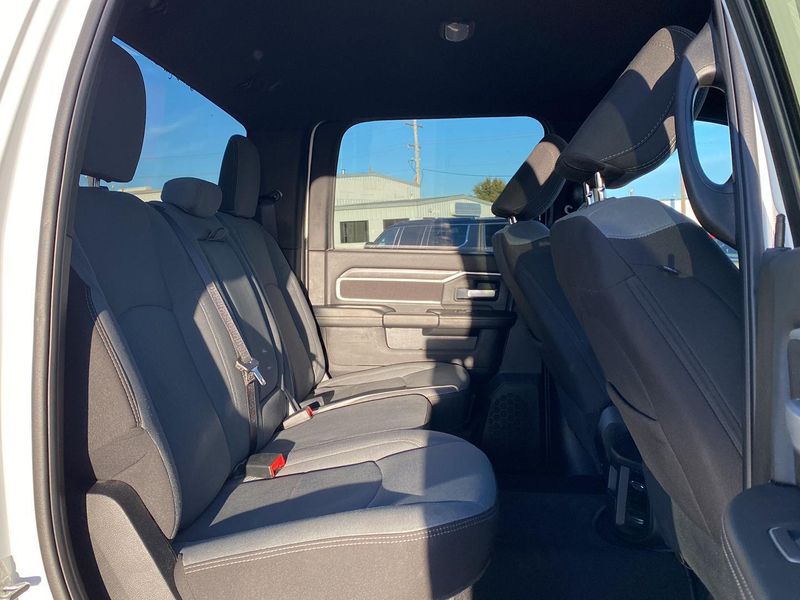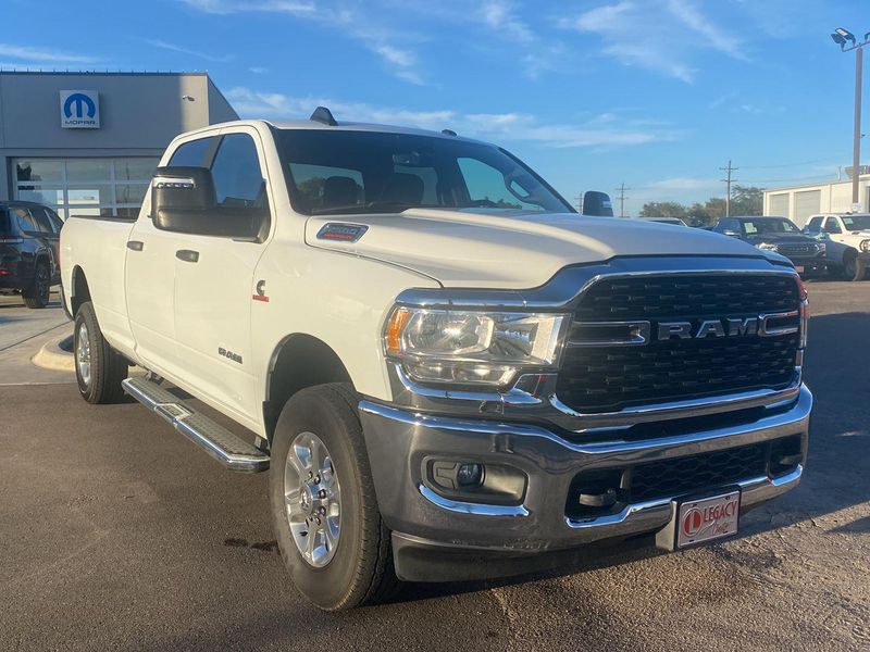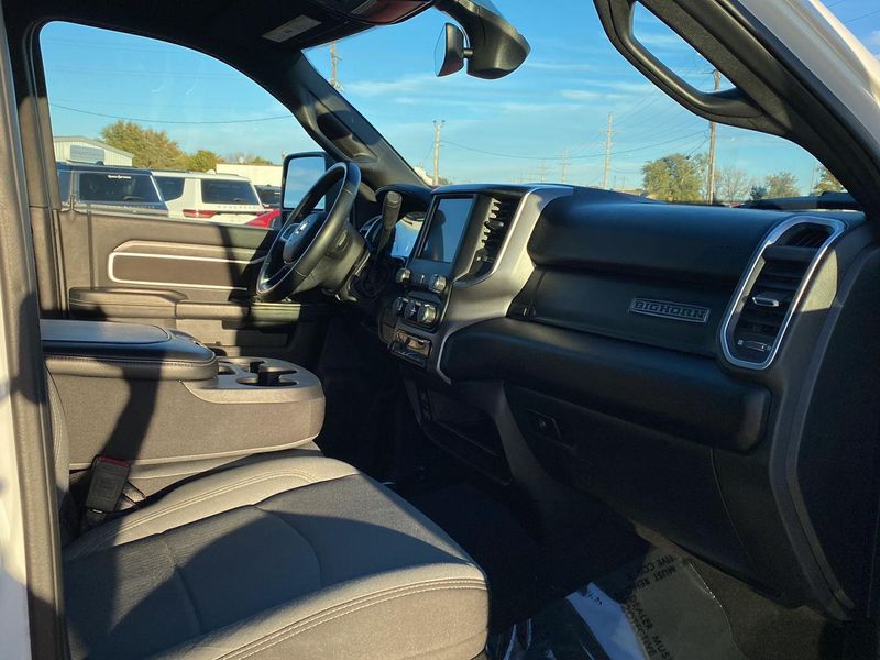 ENGINE: 6.7L I6 CUMMINS TURBO DIESEL, TRANSMISSION: 6-SPEED AUTOMATIC (68RFE), QUICK ORDER PACKAGE 2HZ BIG HORN, 3.73 AXLE RATIO, WHEELS: 18" X 8.0" POLISHED ALUMINUM, TIRES: LT275/70R18E BSW AS, BRIGHT WHITE CLEARCOAT, DIESEL GRAY/BLACK, PREMIUM CLOTH 40/20/40 BENCH SEAT, LEVEL 1 EQUIPMENT GROUP, TOW HOOKS, FRONT LICENSE PLATE BRACKET, CHROME FLAT CAB-LENGTH SIDE STEPS, FRONT FOG LAMPS, RADIO: UCONNECT 5 W W/8.4" DISPLAY, POWER 2-WAY DRIVER LUMBAR ADJUST, MANUFACTURER'S STATEMENT OF ORIGIN